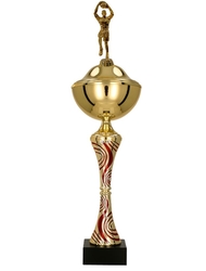 Kvalitní sportovní poháry v designu Pula s kovovým víkem a tématickou soškou basketbalu. Tyto poháry jsou nabízeny v 7 různých velikostech a v kombinaci zlaté a červené barvy. Víko se soškou je na poháru pouze nasazené a není možné ho napevno přidělat.