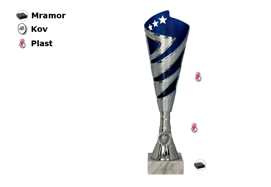 Sportovní poháry Tirana mají plastový kalich, plastovou nohu a mramorový podstavec.
