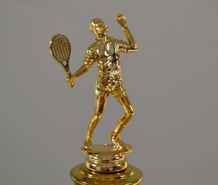 Kvalitní sportovní poháry v designu Ankara s kovovým víkem a tématickou soškou tenisty. Tyto poháry jsou nabízeny v 8 různých velikostech a v kombinaci zlatostříbrné barvy. Víko se soškou je na poháru pouze nasazené a není možné ho napevno přidělat.
